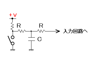 スイッチのチャタリングを防止する方法は色々ありますが、ここでは抵抗(R)とコンデンサ(C)を組み合わせて利用します。